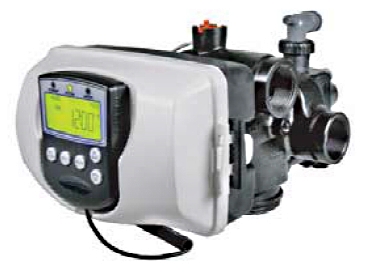 The Pro 2010 control valve is a 2" top mount control valve suited for mid-size commercial / industrial applications featuring fully adjustable cycle times with a 6-cycle control delivering controlled backwash, down-flow brining / slow rinse, second backwash, fast rinse, refill with down-flow service. This Lead Free brass valve body has service flow rates of 125 gpm and a backwash of 85 gpm and post treated water regenerant refill. The solid state microprocessor with easy access front panel settings displays time of day, days until next regeneration, volume remaining, current fl ow rate and total volume used (Totalizer). Four methods to initiate regeneration; meter immediate, meter delayed, time clock delayed or pressure differential. Optional double backwash feature offers optimum regeneration, cleaning ability and efficiency. A coin cell lithium battery offers back-up with a 8 hour carry over. The 12-volt output AC adapter provides safe and easy installation. Reliable and proven DC drive. Economical stainless steel optional meter assembly.