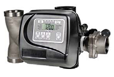 The Pro 2010 control valve is a 2" top mount control valve suited for mid-size commercial / industrial applications featuring fully adjustable cycle times with a 6-cycle control delivering controlled backwash, down-flow brining / slow rinse, second backwash, fast rinse, refill with down-flow service. This Lead Free brass valve body has service flow rates of 125 gpm and a backwash of 85 gpm and post treated water regenerant refill. The solid state microprocessor with easy access front panel settings displays time of day, days until next regeneration, volume remaining, current fl ow rate and total volume used (Totalizer). Four methods to initiate regeneration; meter immediate, meter delayed, time clock delayed or pressure differential. Optional double backwash feature offers optimum regeneration, cleaning ability and efficiency. A coin cell lithium battery offers back-up with a 8 hour carry over. The 12-volt output AC adapter provides safe and easy installation. Reliable and proven DC drive. Economical stainless steel optional meter assembly.