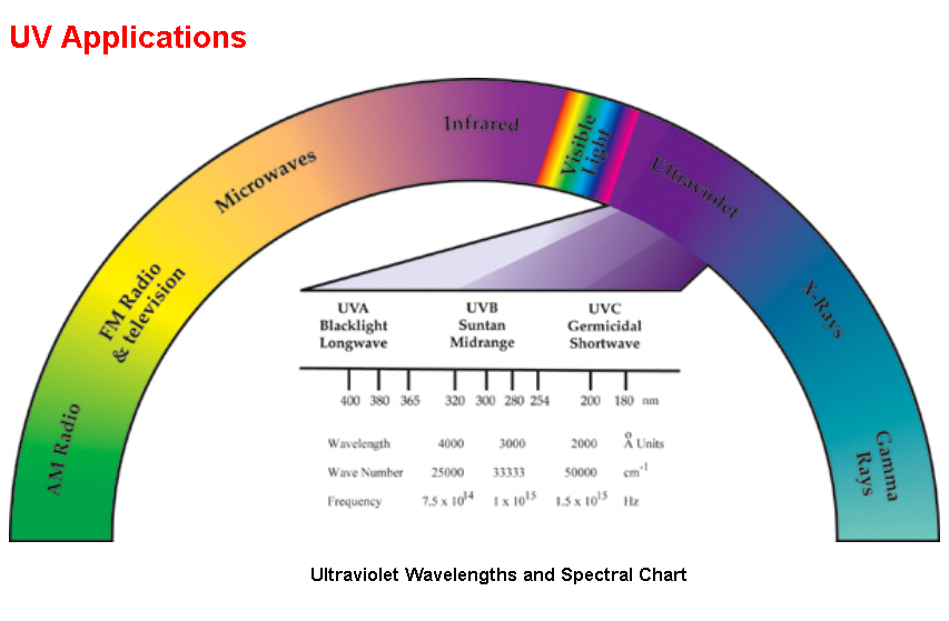 Ultra violet (UV) applications per ultraviolet wavelengths